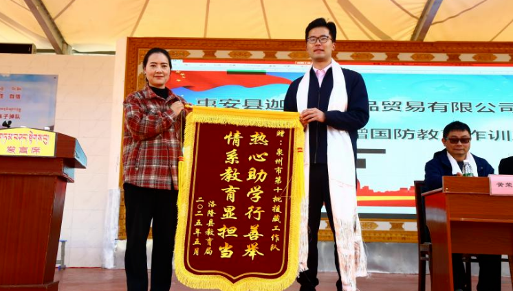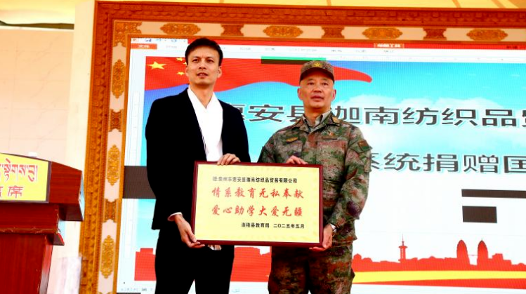 在泉州市第十批援藏工作队的积极牵线对接下,惠安县迦南纺织品贸易有限公司得知洛隆县国防教育推进过程中面临物资短缺等困难,于是慷慨解囊,为洛隆县教育系统送来价值30万余元的国防教育作训服。