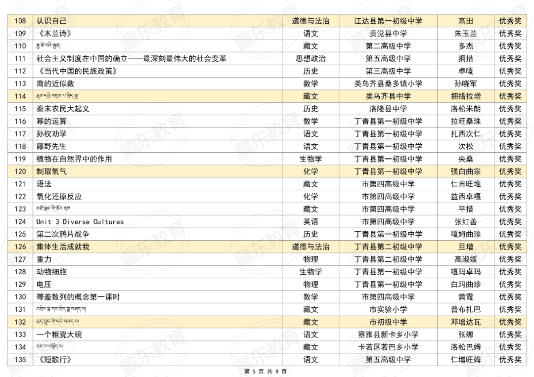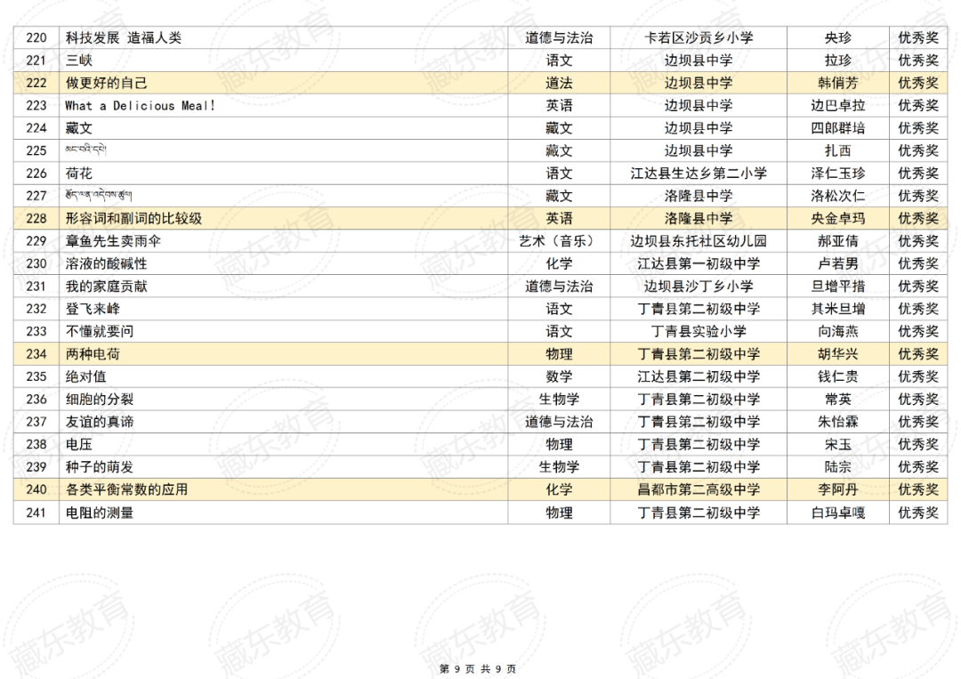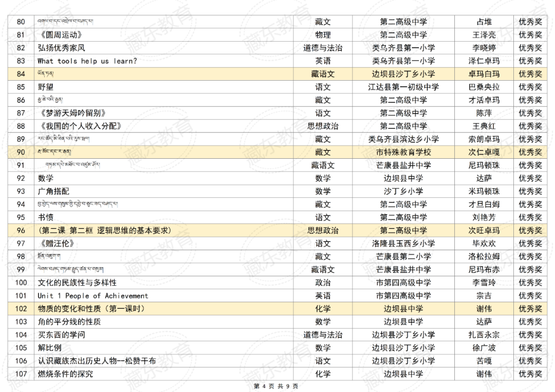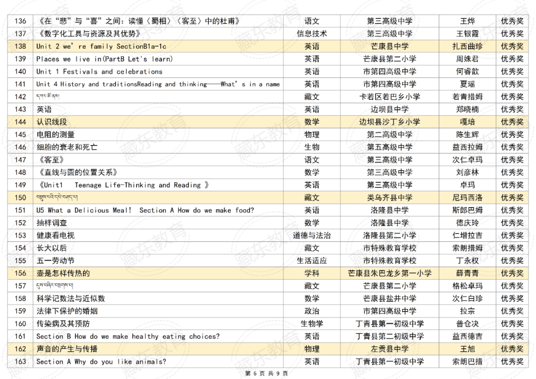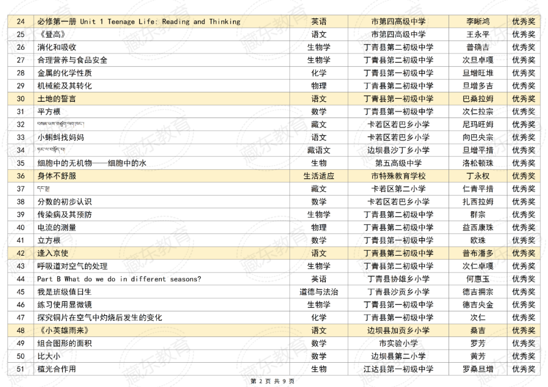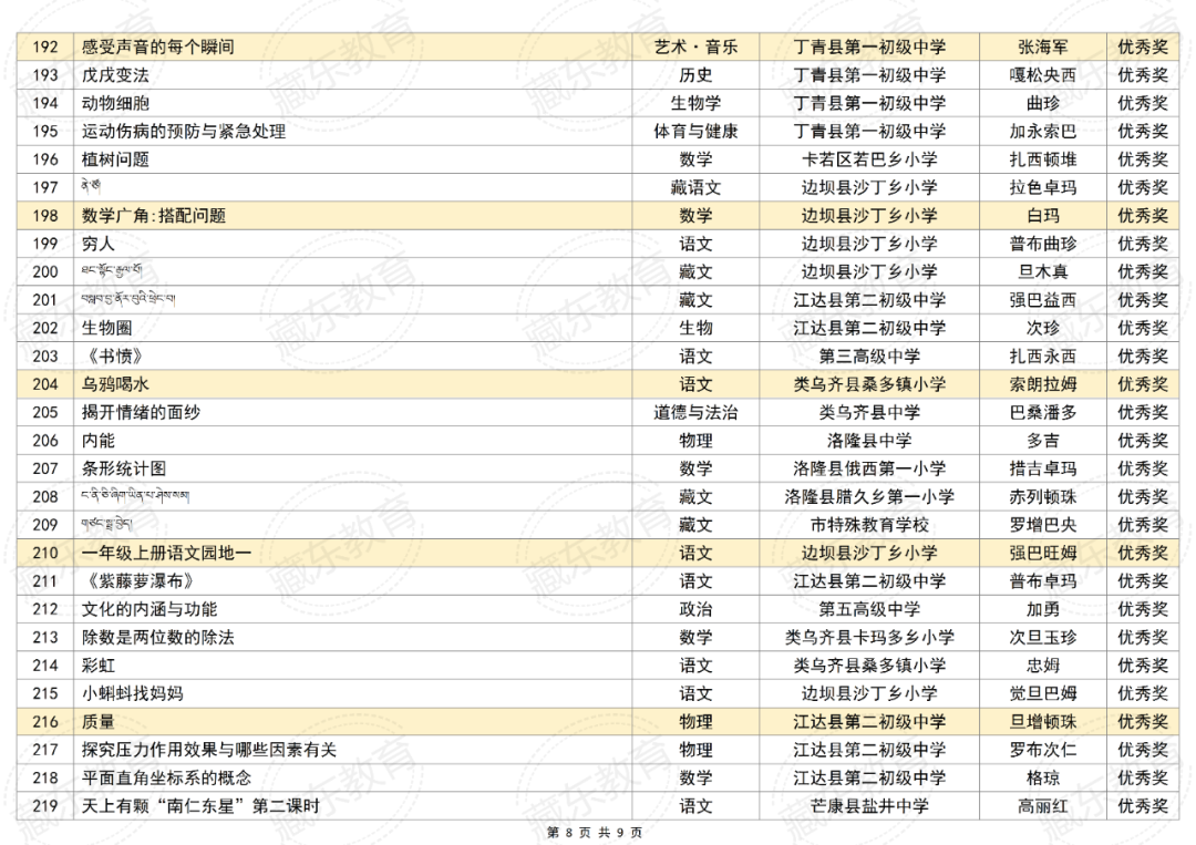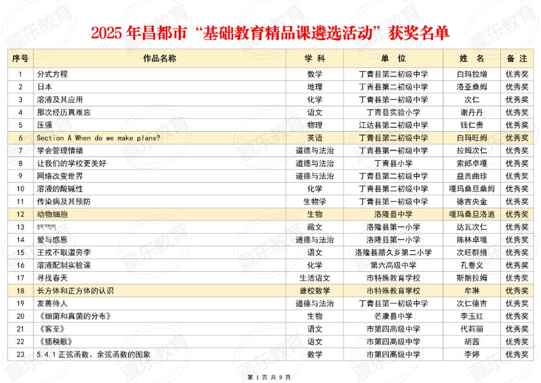 附件:2025年昌都市“基础教育精品课遴选活动”获奖名单